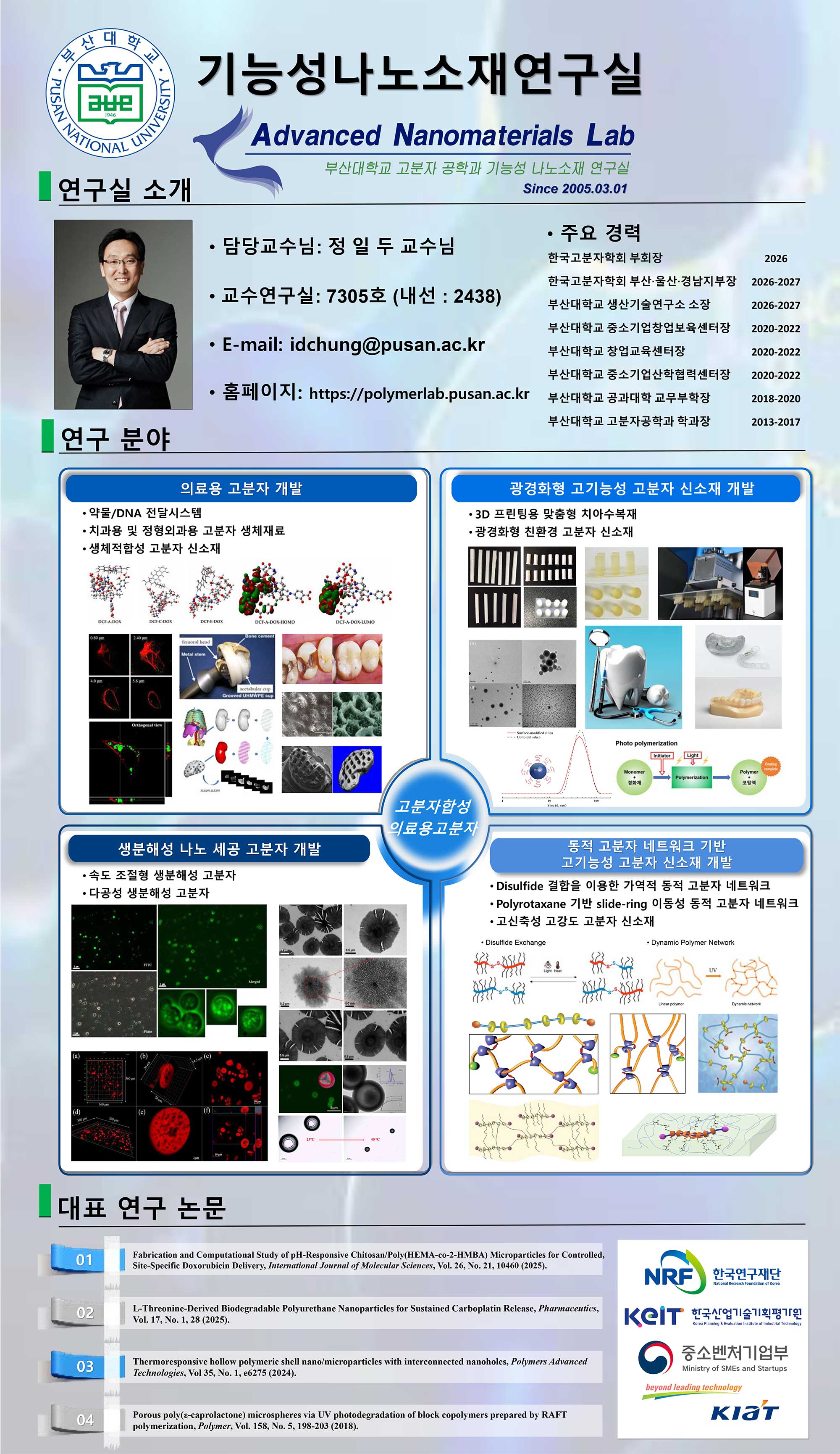 | 광고분자연구실 | 안도원 | 051-510-2466 | 제7공학관 7113호실 | 홈페이지 바로가기 | 연구실 바로가기 |