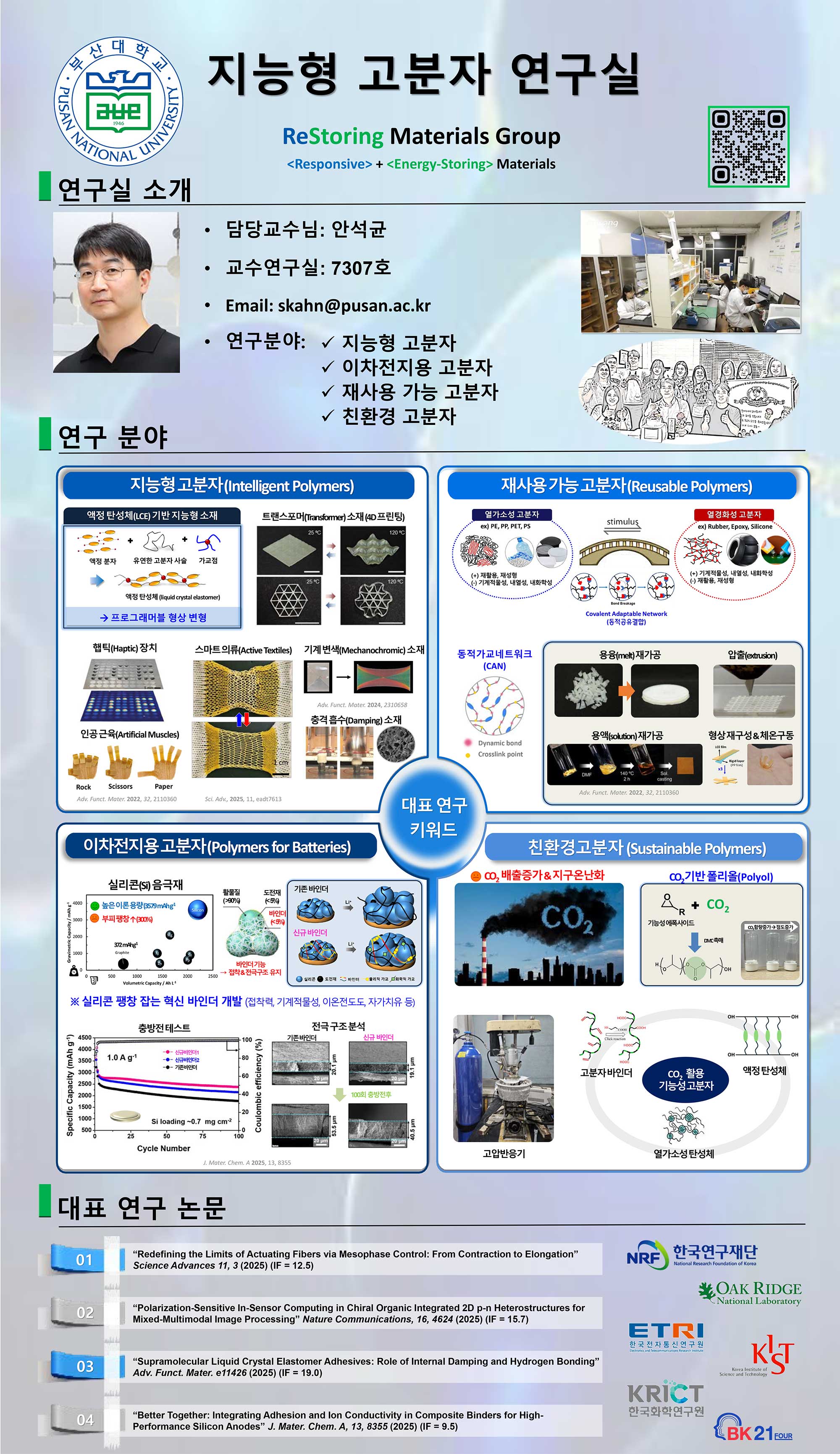| 지능형고분자연구실 | 안석균 | 051-510-3987 | 제7공학관 7203-1호실 | 홈페이지 바로가기 | 연구실 바로가기 |