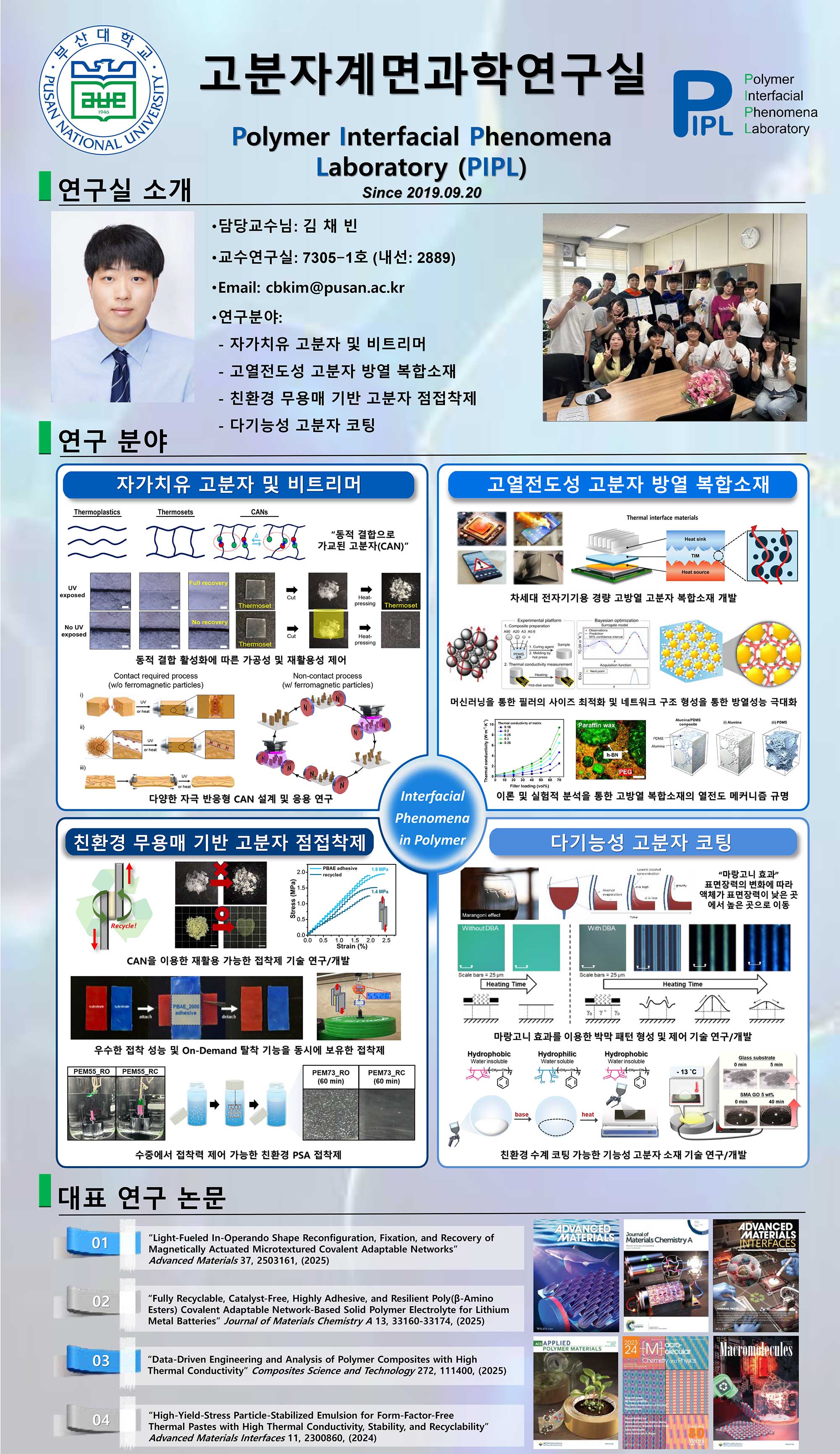 | 고분자계면과학연구실 | 김채빈 | 051-510-3045 | 제7공학관 7207-2호실 | 홈페이지 바로가기 | 연구실 바로가기 |